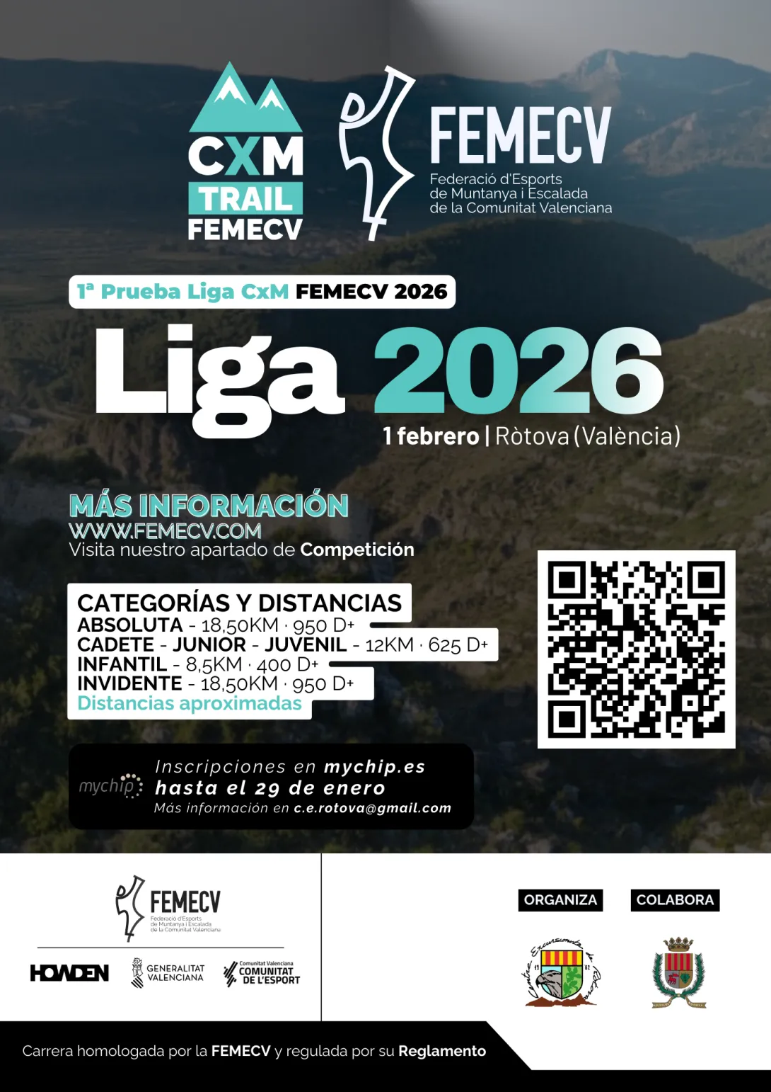 En la 1ª prueba de la Lliga de CxM de la FEMECV que se disputa en el municipio valenciano de Rótova con un recorrido de 18,5K con 950m+ tendremos a Agustin Ribera.