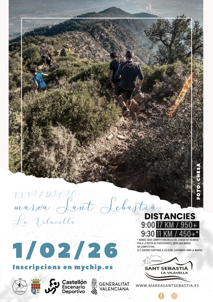 El domingo se celebra en la Vilavella la XXVI Marxa Sant Sebastià, donde estarán Marcel Pitarch y Carmina Ramos en la distancia de 17K con 950m+, y donde Pedro Fornás será nuestro representante en la prueba de 11K y 450m+.